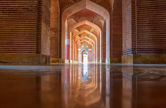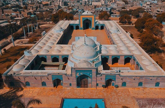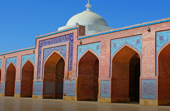 Shah Jahan Mosque also known as the Jamia Masjid of Thatta is a 17th-century building that serves as the central mosque for the city of Thatta. The mosque is considered to have the most elaborate display of tile work in South Asia & geometric brick work - a decorative element that is unusual for Mughal-period mosques. It was built during the reign of Mughal emperor Shah Jahan. The architecture - a reflection of Shah Jahan's campaigns near Samarkand shortly before the mosque was designed. The mosque is unusual for its lack of minarets. It has a total of 93 domes, the most of any structure in Pakistan. Shah Jahan mosque is the finest heritage architecture of unique combination.